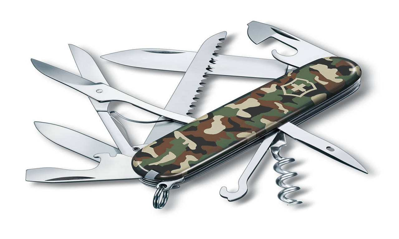 Victorinox Original Swiss Army zakmes ‘Climber’ met gladde transparant blauwe beschaling. Alle onderdelen zijn van roestvrij staal.