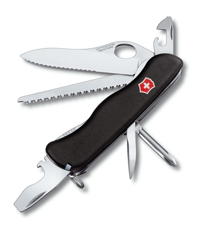 Deze variant van de Victorinox Trailmaster is voorzien van een groot mes met one-hand opening. De snede is voor 2/3e gekarteld, zodat ook materialen als touw gemakkelijk te snijden zijn. Het mes en de flesopener zijn vergrendelbaar, wat de veiligheid verhoogd.