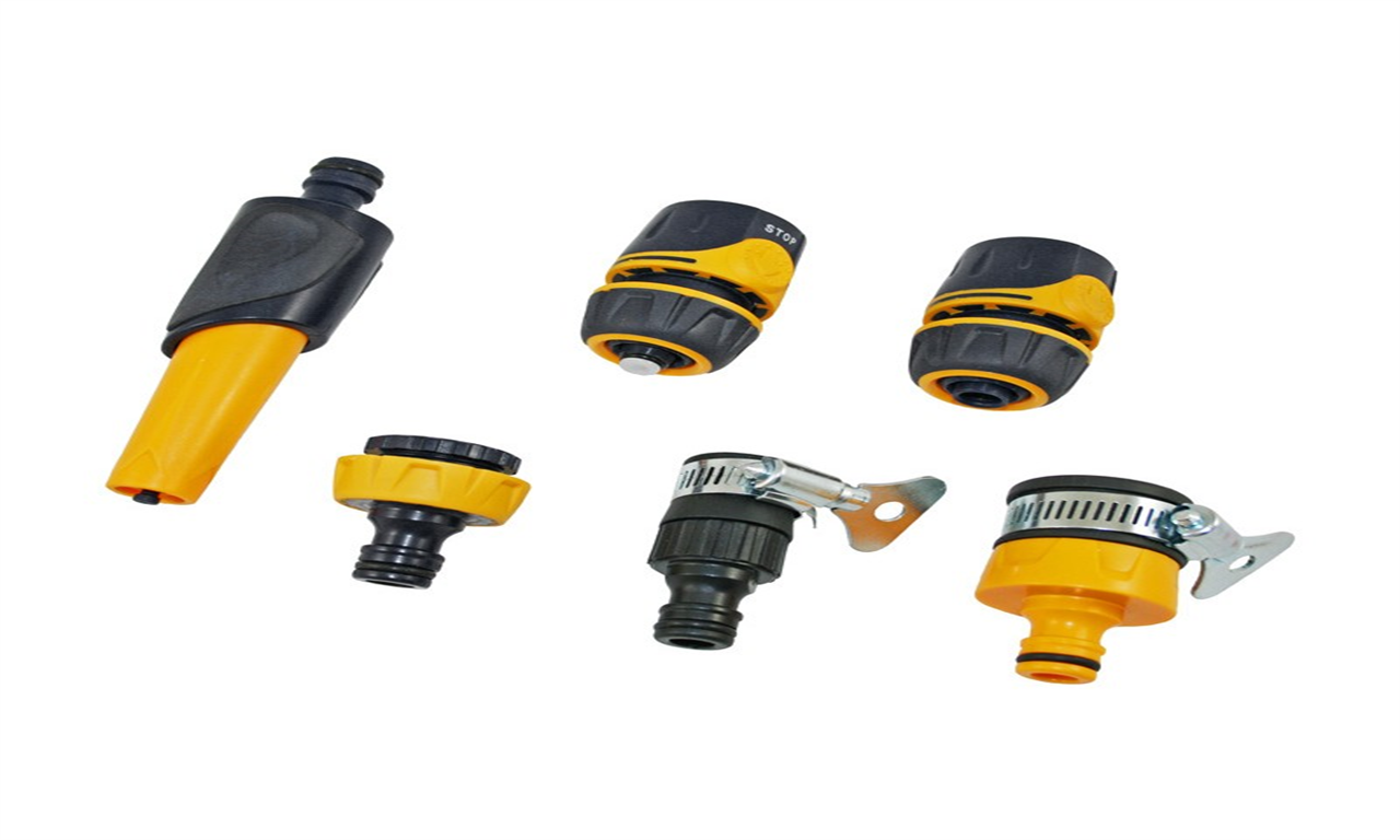 Set van 6 koppelingstukken voor waterkraan en waterslang. De set bevat een spraymond, kraanadapter 3-4 / 1-2, kraan adapter klein, kraanadapter groot, slangverbinder met eindstop en een slangverbinder zonder eindstop. Ideaal voor de vele verschillende kraanaansluitingen in Europa.