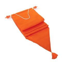 De oranje wimpel is vervaardigd van Spunpolyester. Het doek is geweven met een uiterlijk van wol, met uitstekende eigenschappen; lichtecht, neemt geen vocht op