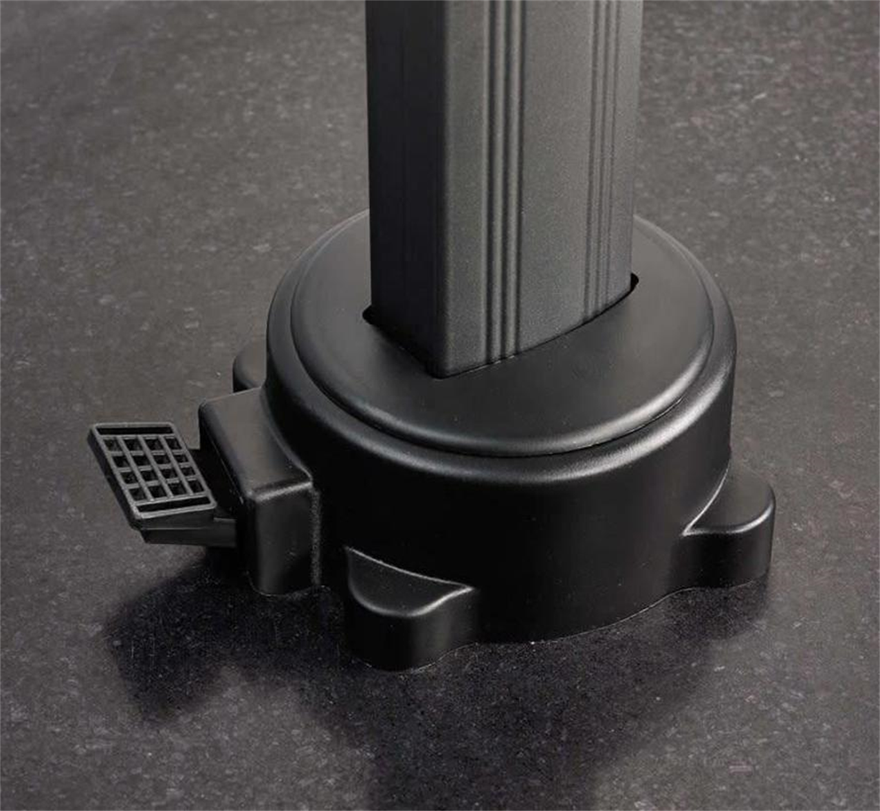 ParasolvoetenWij leveren de parasol zonder de parasolvoet. Wij hebben meerdere parasolvoeten in ons assortiment.Wij adviseren om minimaal een 90kg granieten parasolvoet onder de parasol te plaatsen. Voor open plaatsen waar wat meer wind staat kunt u het beste een 120kg parasolvoet plaatsen. De parasolvoeten zijn allen voorzien van wielen en gemakkelijk te verplaatsen.